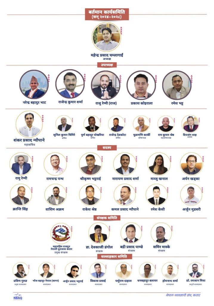 NBAQ started its operations in Doha in the year 2018 and is established with a written constitution that is a document that has been approved by the General Body of the organization. NBAQ works under the Embassy of Nepal and is registered as a professional body with the Qatar Financial Center (QFC). A managing committee that represents the General Body’s interests in promoting business and trade between Nepal and Qatar manages NBAQ. Since its inception, NBAQ has grown in number of members and the business events that it conducts on an annual basis.